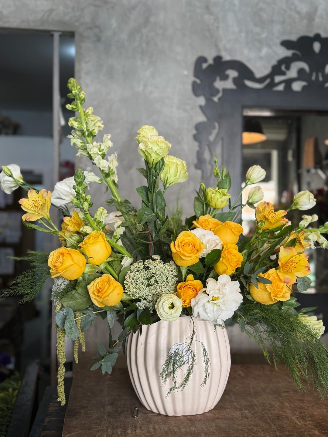 Arreglo mediano combinado con flores amarillas